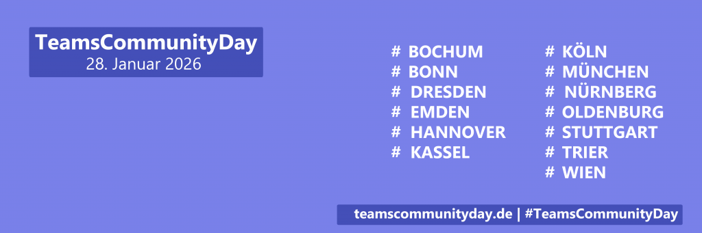 Wir freuen uns auch 2026 wieder tolle Standorte beim TeamsCommunityDay 2026 mit an Board zu haben. Danke an alle lokalen Communityleads!